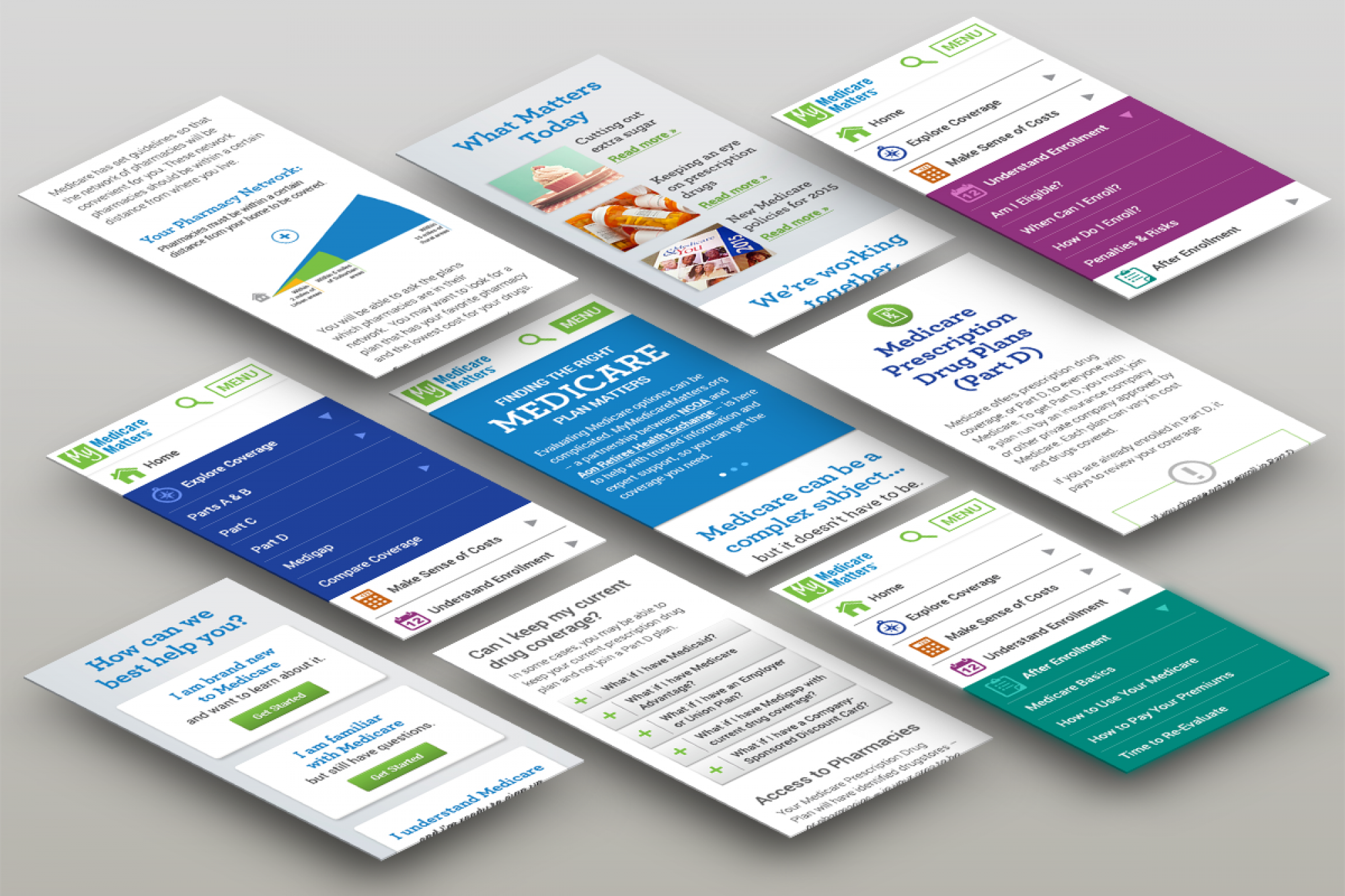 Driven by user research and testing, we created a ground-up overhaul of the My Medicare Matters site, which had grown every bit as complex as Medicare itself. This caused anxiety in what is already a consternating decision that must be made. Our strategy: to reduce anxiety with a friendly tone, clear user paths and a user experience focused on simplicity.